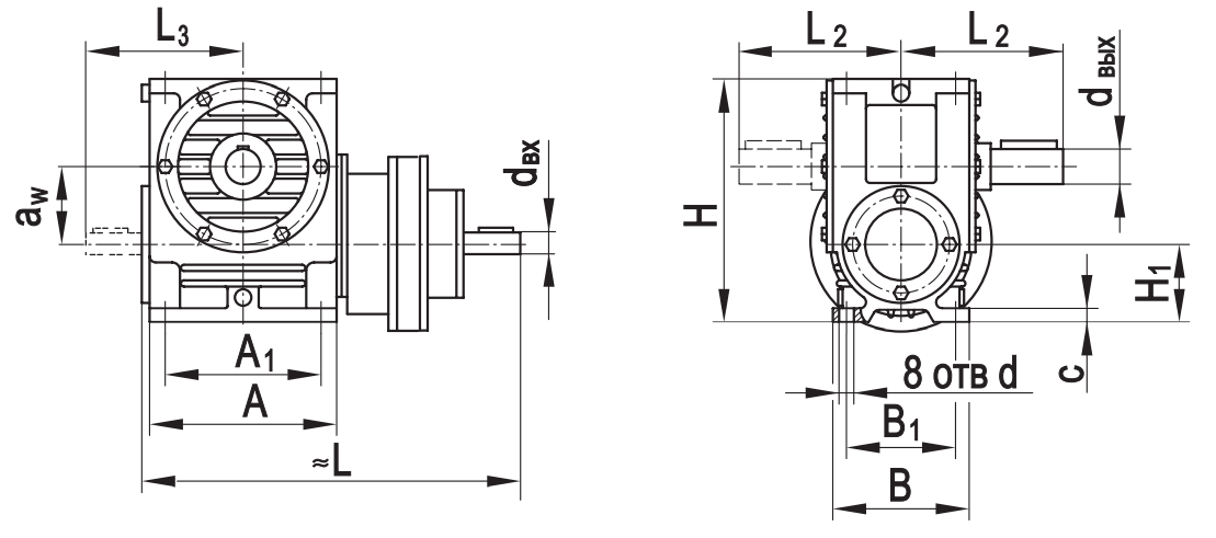Типоразмер аW А А1 В В1 L* L1max L2* L3*Н Н 1 сd d вх dвых