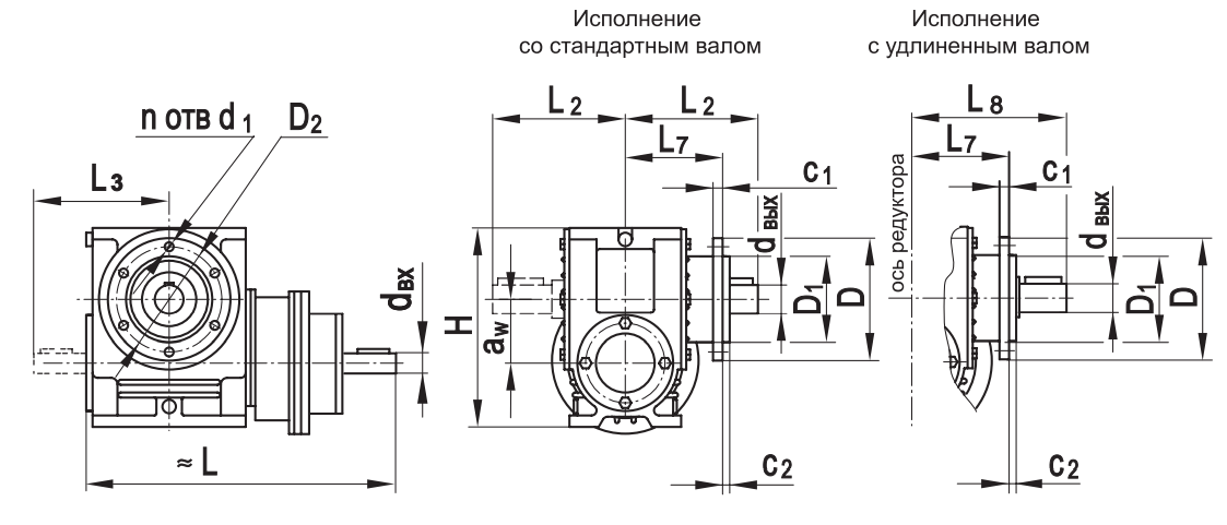 Типоразмер аW D D1 D2 H L* L1max L2* L3* L7 L8* c1 c2 d1 dвх dвых n