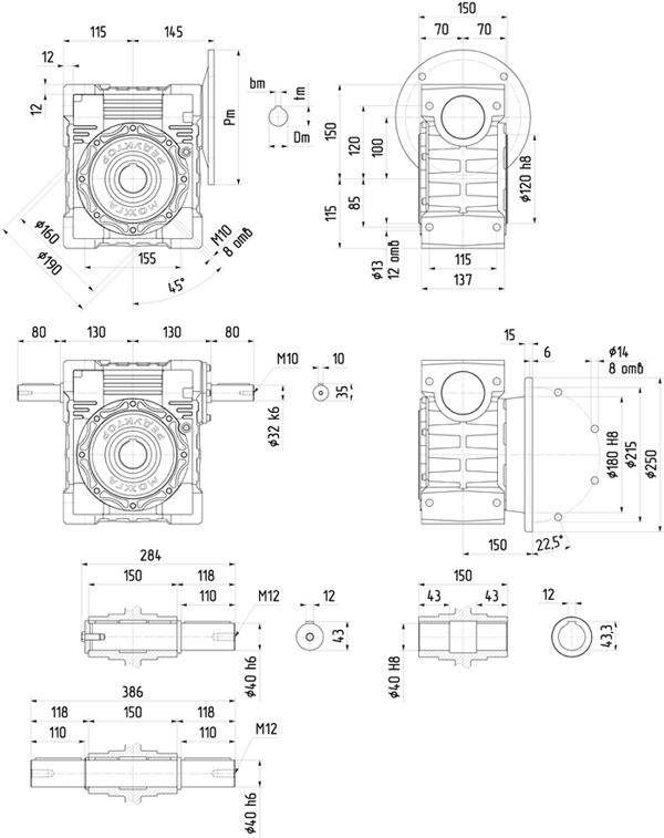 Габаритные и присоединительные размеры редуктора 6Ч-100