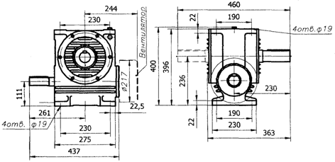 Варианты сборки (рассматривать при расположении червячной пары – червяк под колесом)