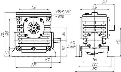 Габаритные и присоединительные размеры редуктора Ч 80