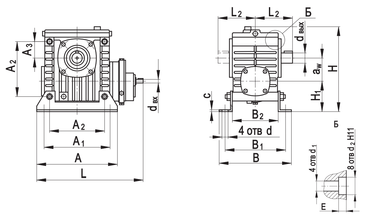 aw А А1 А2 А3 В В1 В2 L* L. 1max L2* Н Н1 с d d1 d2 Е dвх dвых