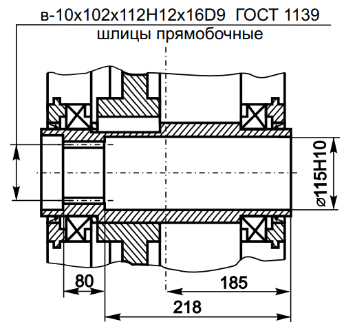 Размеры концов тихоходных валов в виде зубчатой полумуфты